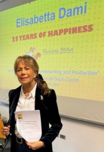 Oggi collaboro anche come docente non di ruolo con l’Università Cattolica del Sacro Cuore a Milano, in particolare per l’Alta Scuola Almed con lezioni focalizzate sulla comunicazione strategica nel management della diversità (Diversity Management). Inoltre, incontro tanti ragazzi e ragazze nelle scuole di tutta Italia, dalla Primaria all’Università. Da tutti i ragazzi che incontro imparo qualcosa! Ancora oggi però ciò che amo di più è visitare gli ospedali insieme a Geronimo Stilton per ricordare a tutti e anche a me stessa l’importanza della speranza che dobbiamo tenere sempre viva nel cuore come una luce preziosa.