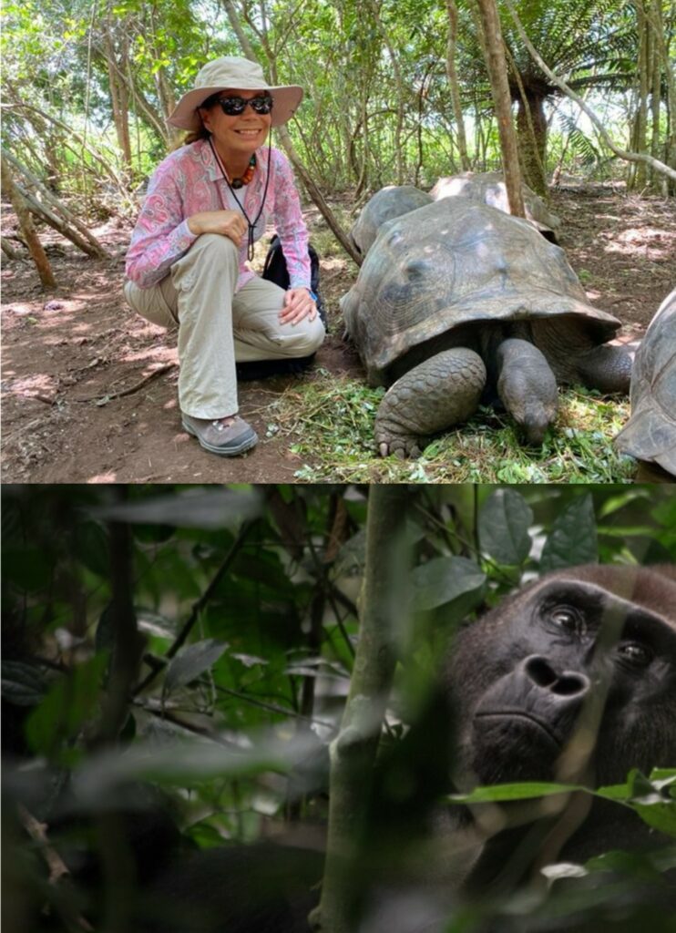 Foto: sopra sono con le tartarughe giganti a Zanzibar, sotto vedete un gorilla silver back.